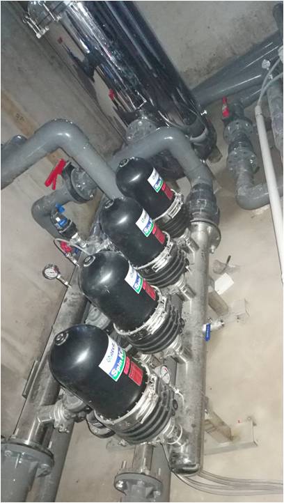 叠片过滤器,以滤片为杂质处理载体,它由一组双面带不同方向沟槽的滤片相叠加构成,其相邻面上的沟槽棱边便形成许许多多的交叉点,这些交叉点构成了大量的空腔和不规则的通路,这些通路由外向里不断缩小。过滤时,这些通路导致水的紊流,最终促使水中的杂质被拦截在各个交叉点上。全自动控制.连续过滤,在过滤系统内单元之间,反洗过程轮流进行,各单元工作.反冲洗状态之间自动切换,确保连续出水.系统压损小.系统操作成本低,运行可靠,系统使用寿命长。反冲水流沿内壁切线方向自内向外冲洗滤片表面粘附的各种杂质,滤片在反冲洗水流的作用下作旋转,保证所有污物均被有效洗净并排出。可使用时间间隔和压力差控制反冲洗的所有步骤。采用这种过滤原理的过滤器在过滤和反冲洗时叠片间隙动态可变,对提高过滤性能、过滤水质非常有利,又可大大减少反洗用水量,通常自耗水量约为 0.25% 。除去水中杂质,使水质达到应用要求.保护设备.延长被保护水处理单元的使用寿命,节约反冲洗水和更换成本.